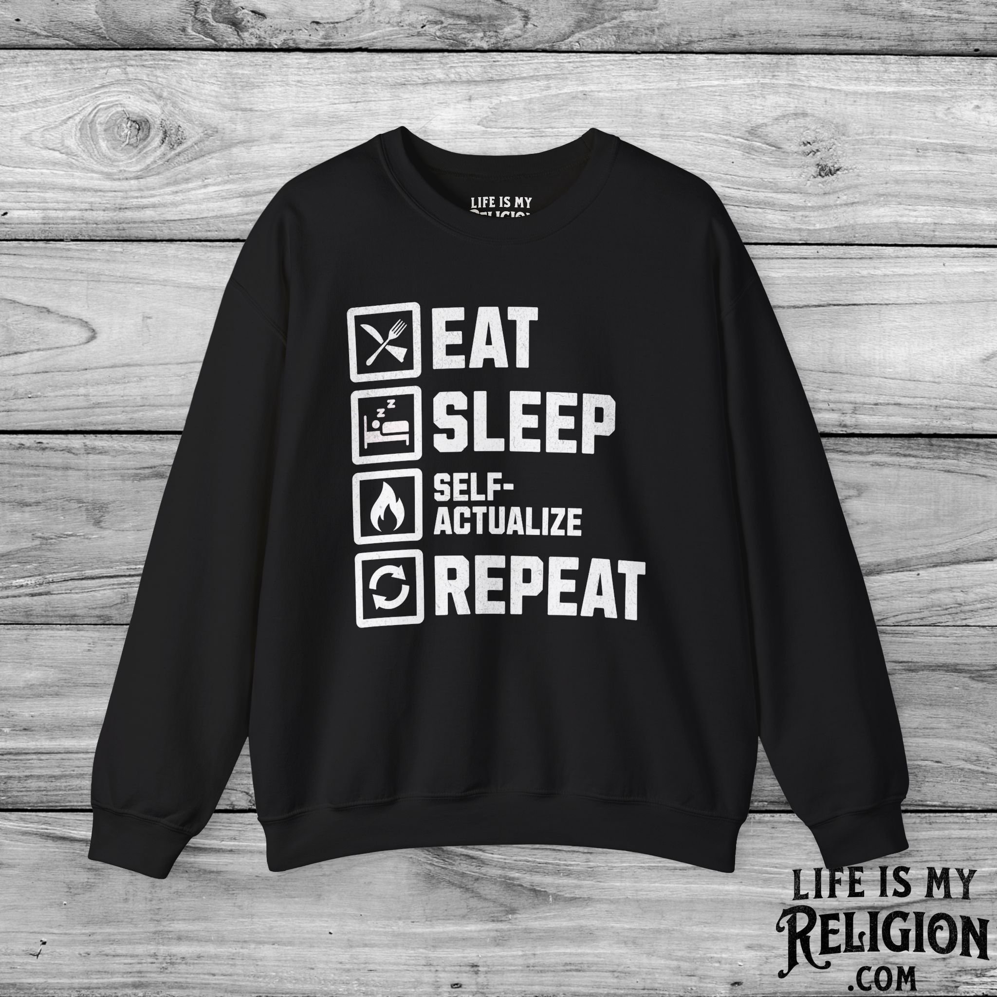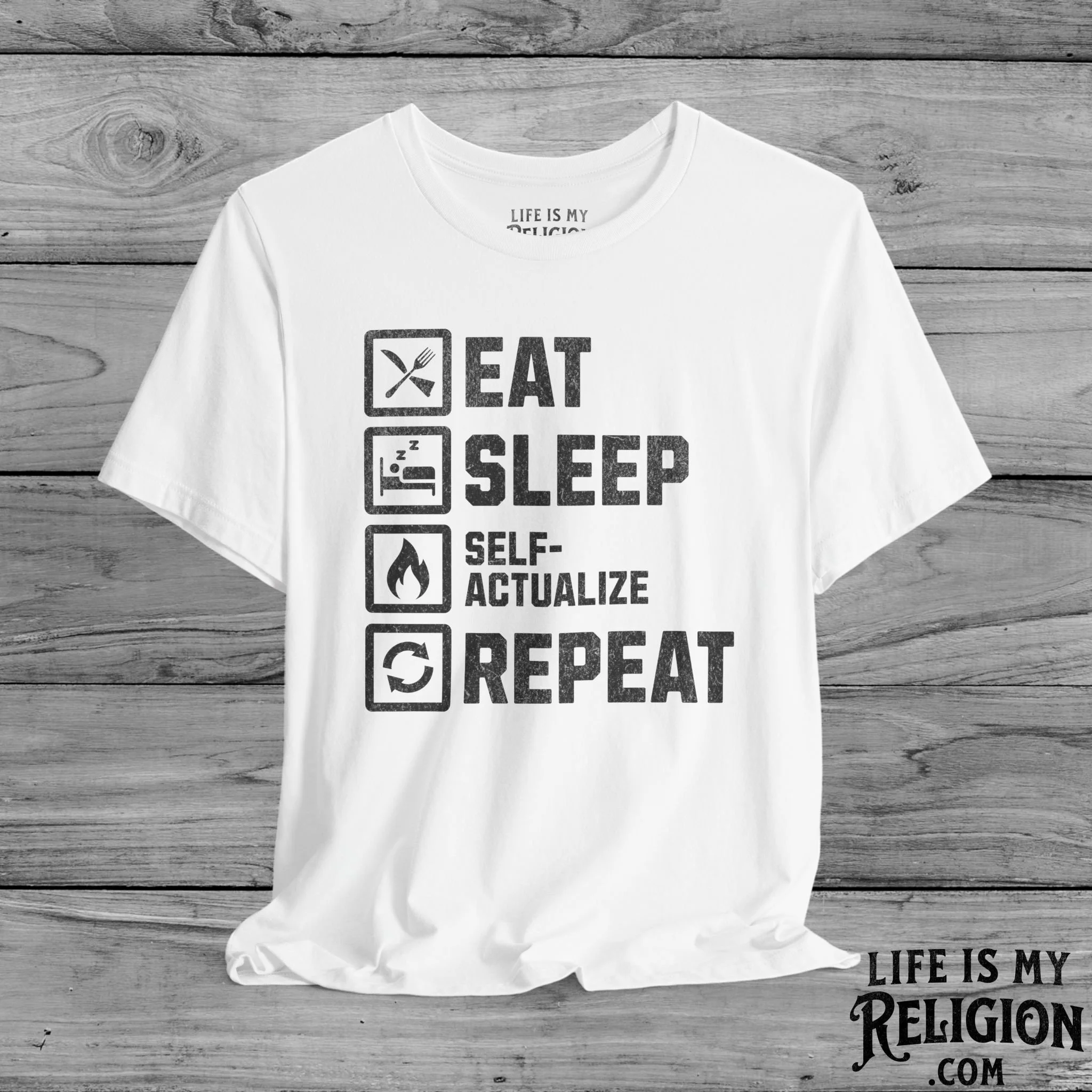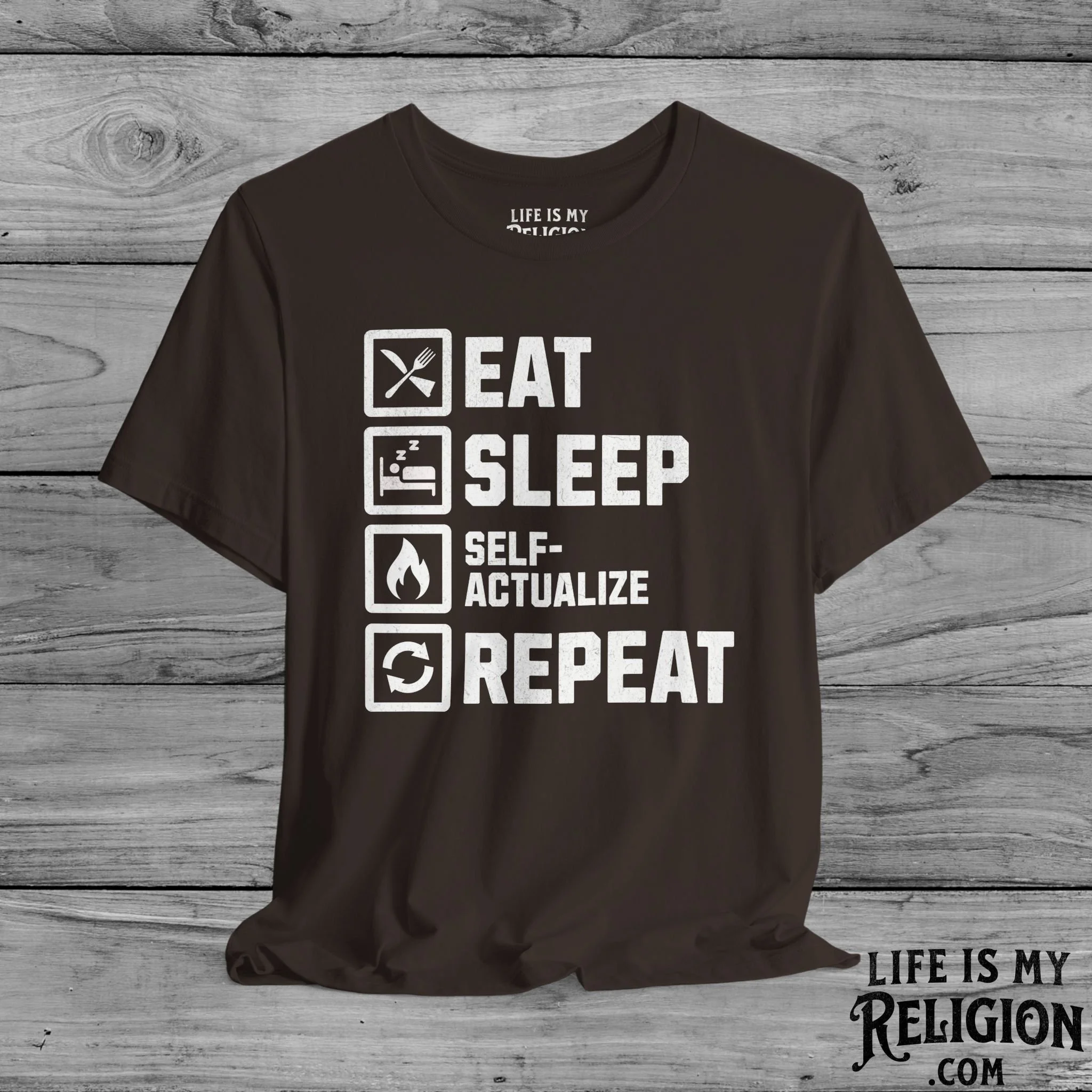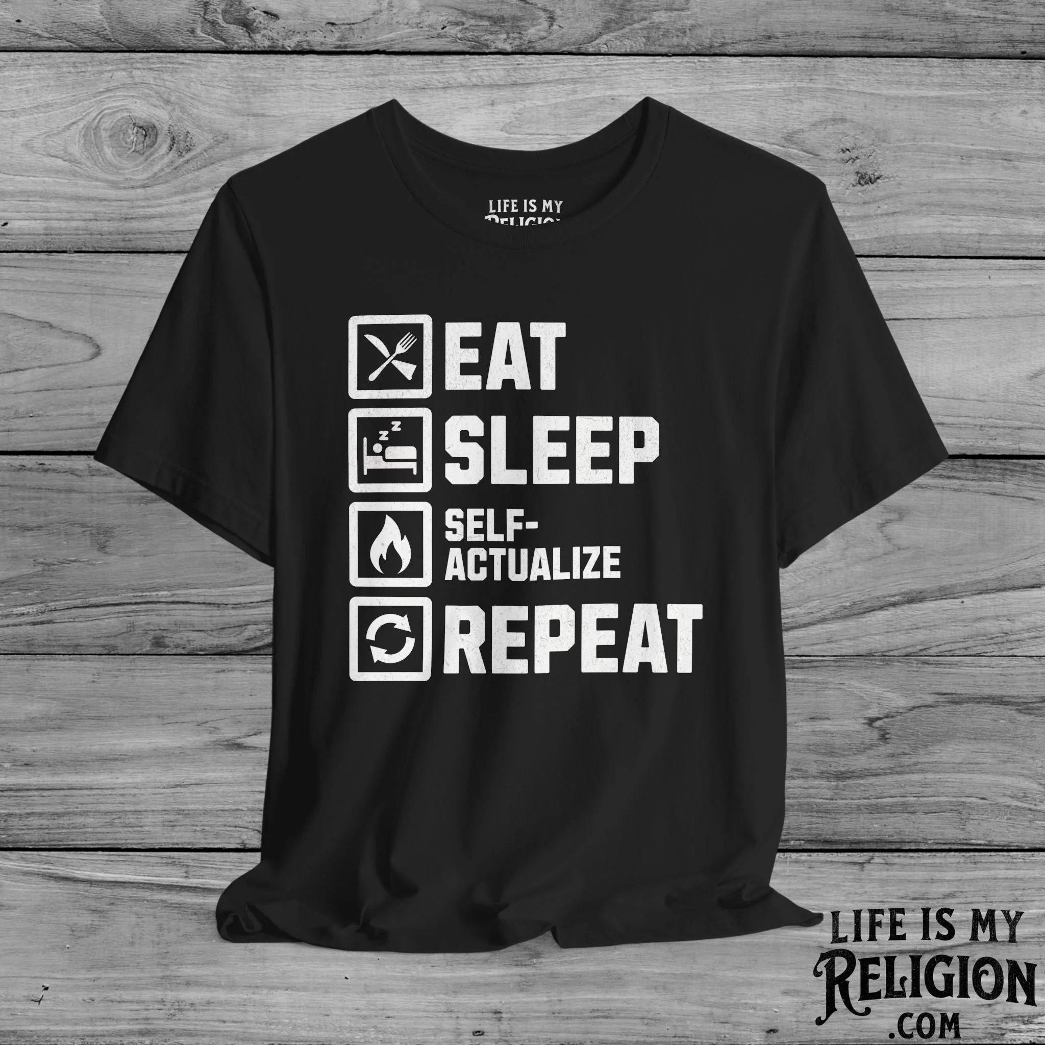 <<< Back to Apparel Quick View Eat Sleep Self-Actualize Repeat - Short Sleeve Tee from $22.99 Color: Select Color Black Dark Grey Heather Natural Navy White Brown Size: Select Size XS S M L XL 2XL 3XL 4XL Add to cart Eat Sleep Self-Actualize Repeat - Crewneck Sweatshirt from $30.99 Color: Select Color Charcoal Dark Chocolate Light Blue Light Pink Navy Purple Red Sport Grey White Black Military Green Royal Size: Select Size S M L XL 2XL 3XL 4XL Add to cart Eat Sleep Self-Actualize Repeat - Hoodie from $34.95 Size: Select Size S M L XL 2XL 3XL 4XL 5XL Color: Select Color White Black Red Royal Military Green Light Pink Charcoal Dark Chocolate Add to cart