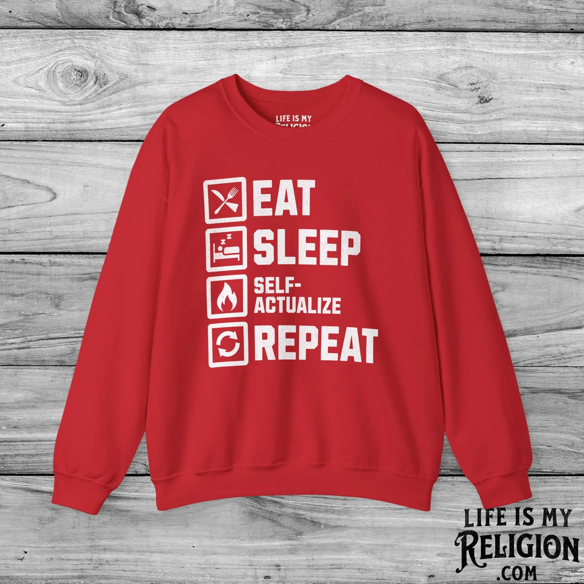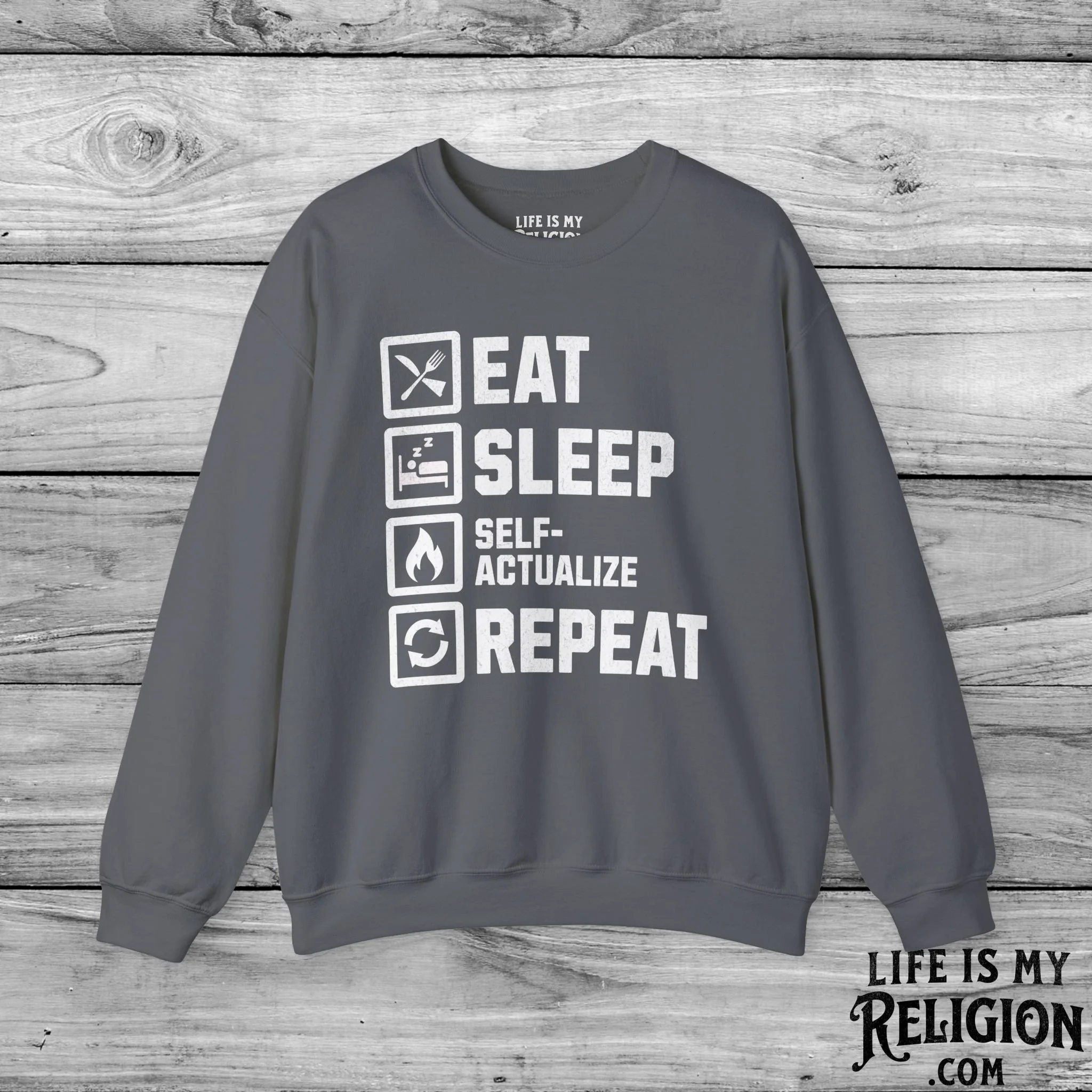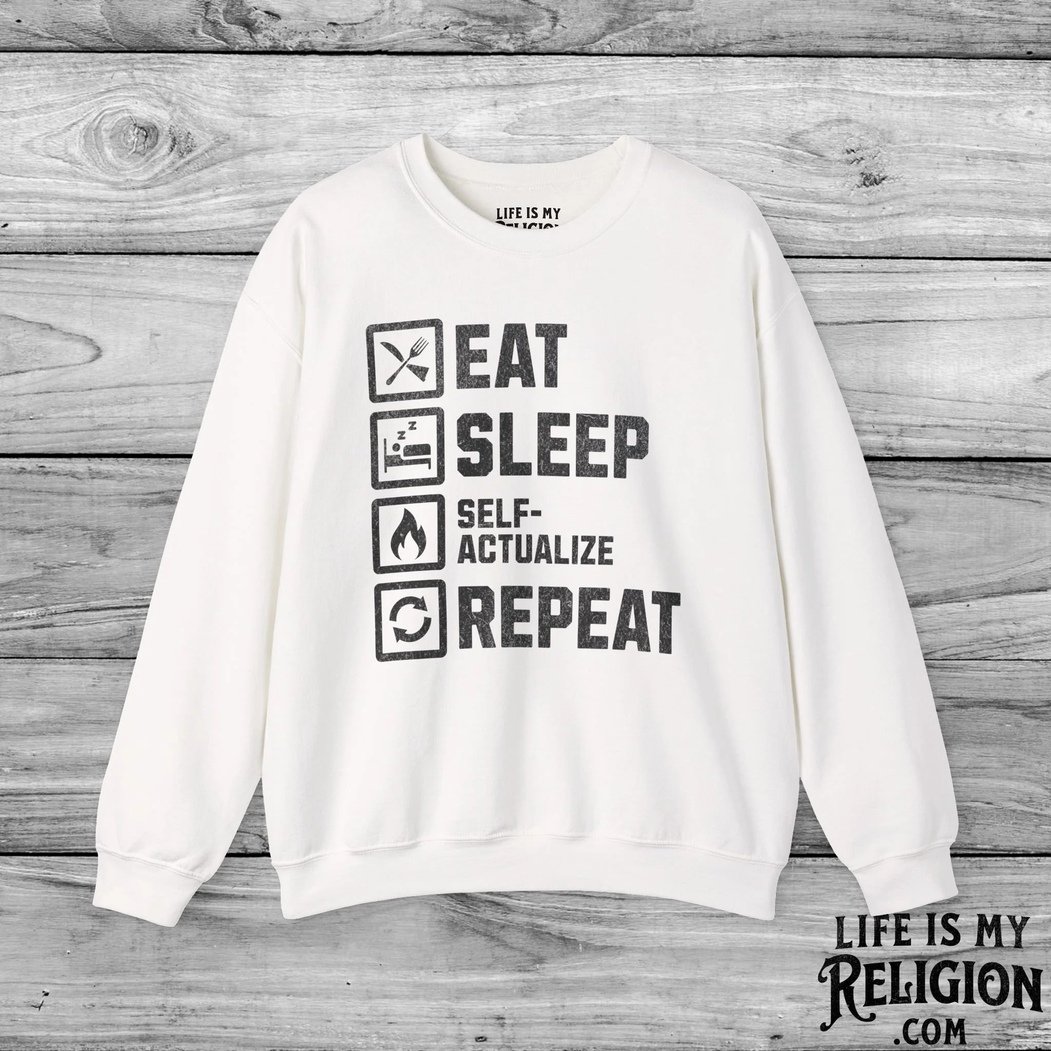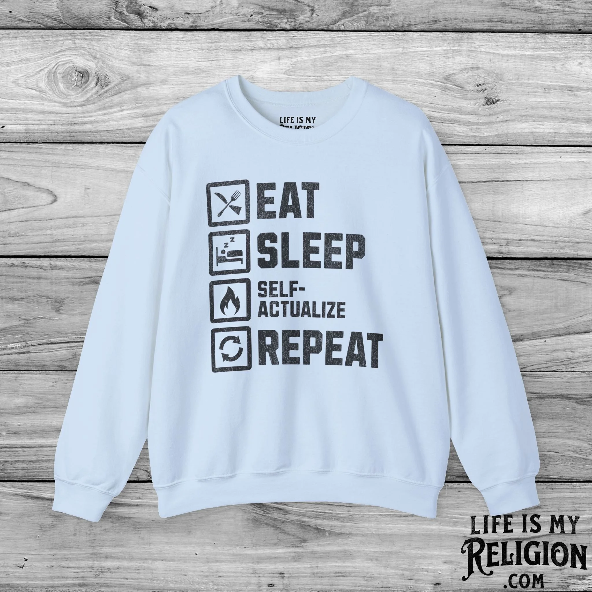 <<< Back to Apparel Quick View Eat Sleep Self-Actualize Repeat - Short Sleeve Tee from $22.99 Color: Select Color Black Dark Grey Heather Natural Navy White Brown Size: Select Size XS S M L XL 2XL 3XL 4XL Add to cart Eat Sleep Self-Actualize Repeat - Crewneck Sweatshirt from $30.99 Color: Select Color Charcoal Dark Chocolate Light Blue Light Pink Navy Purple Red Sport Grey White Black Military Green Royal Size: Select Size S M L XL 2XL 3XL 4XL Add to cart Eat Sleep Self-Actualize Repeat - Hoodie from $34.95 Size: Select Size S M L XL 2XL 3XL 4XL 5XL Color: Select Color White Black Red Royal Military Green Light Pink Charcoal Dark Chocolate Add to cart