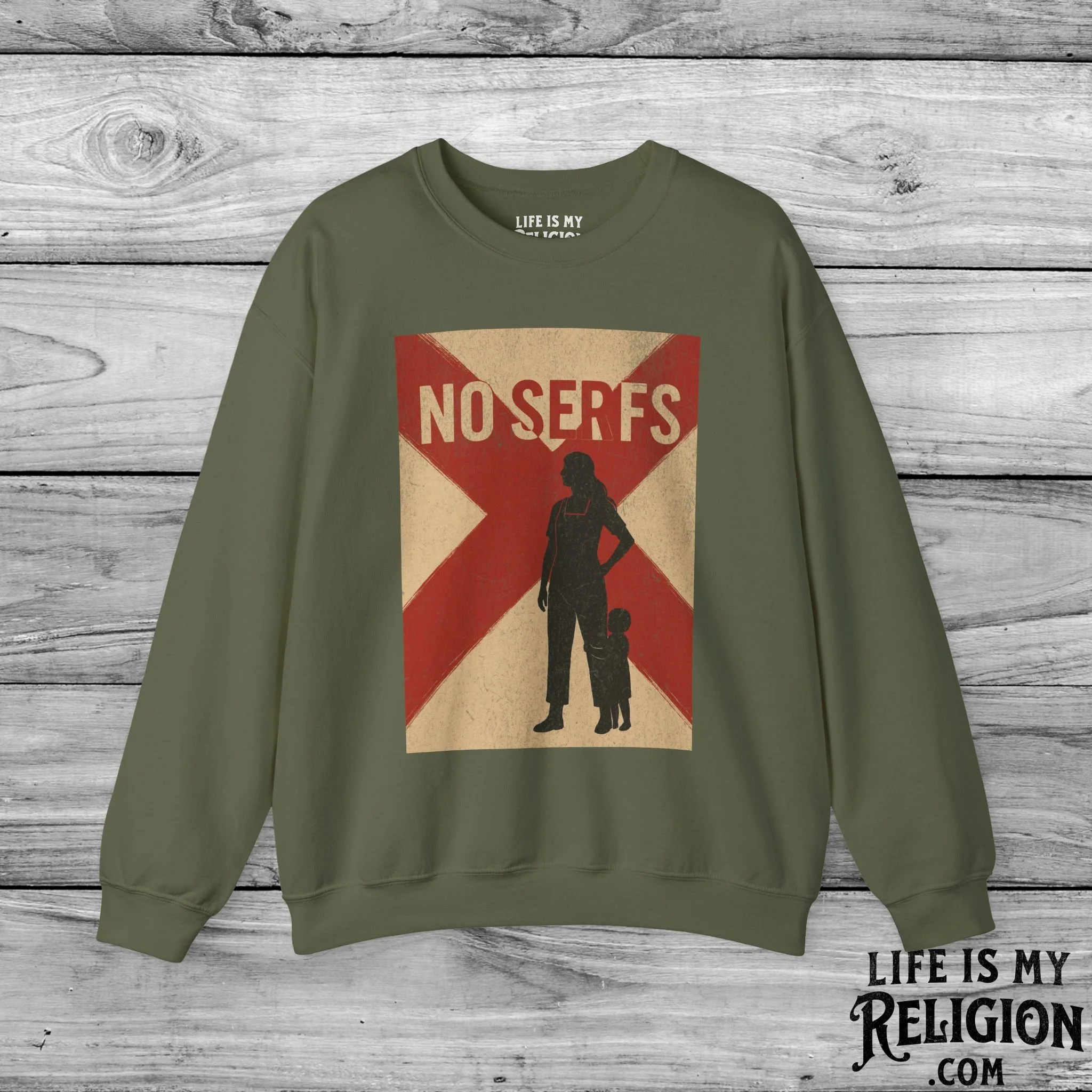 <<< Back to the Jen-Ex Collection No Serfs - T-Shirt from $22.99 Color: Select Color Athletic Heather Black Dark Grey Heather Natural Soft Pink White Brown Size: Select Size XS S M L XL 2XL 3XL 4XL Add to cart No Serfs - Crewneck Sweatshirt from $30.99 Color: Select Color Charcoal Dark Chocolate Light Blue Light Pink Sport Grey White Black Military Green Royal Size: Select Size S M L XL 2XL 3XL 4XL Add to cart No Serfs - Hoodie from $35.99 Size: Select Size S M L XL 2XL 3XL 4XL 5XL Color: Select Color Sport Grey White Black Royal Military Green Light Pink Charcoal Dark Chocolate Add to cart