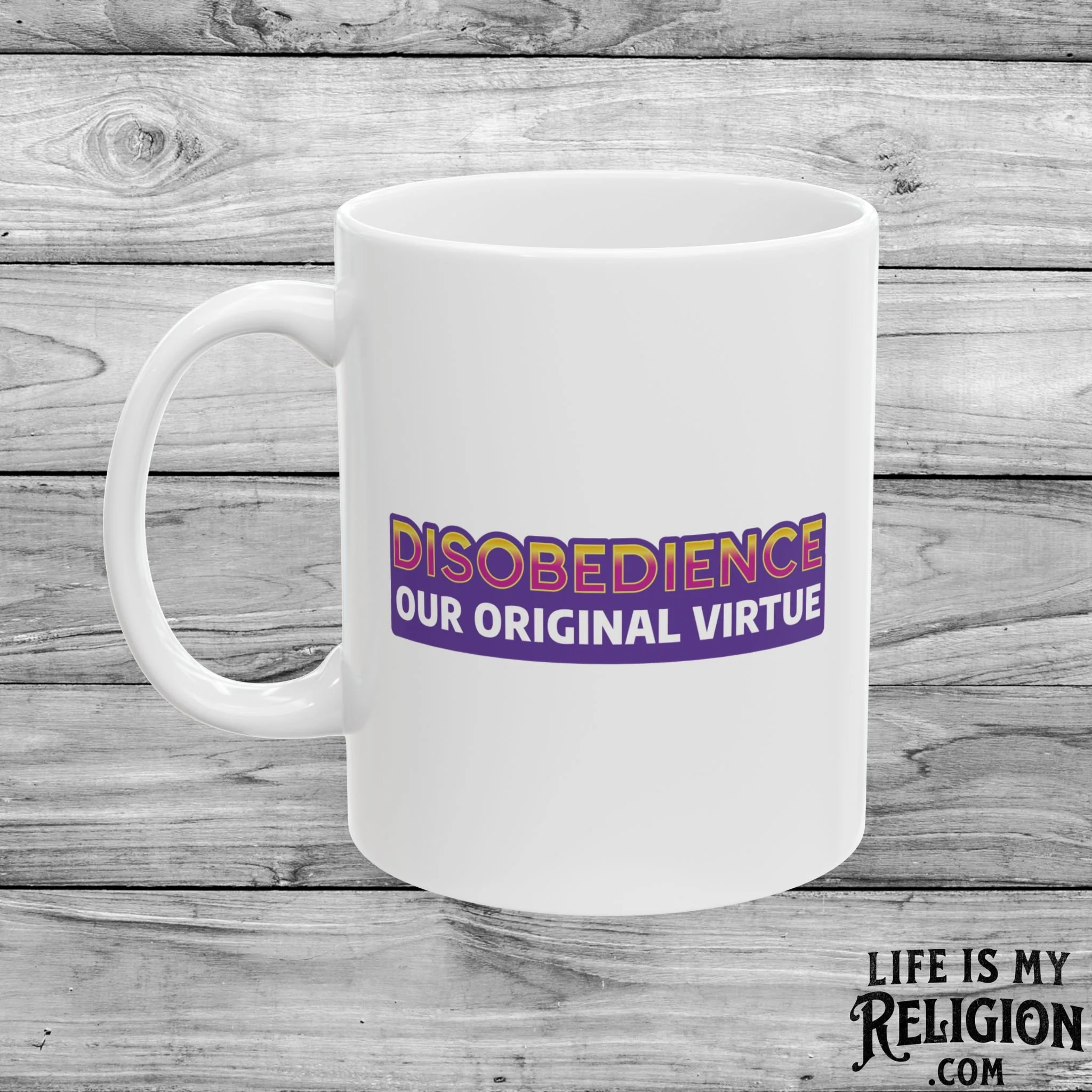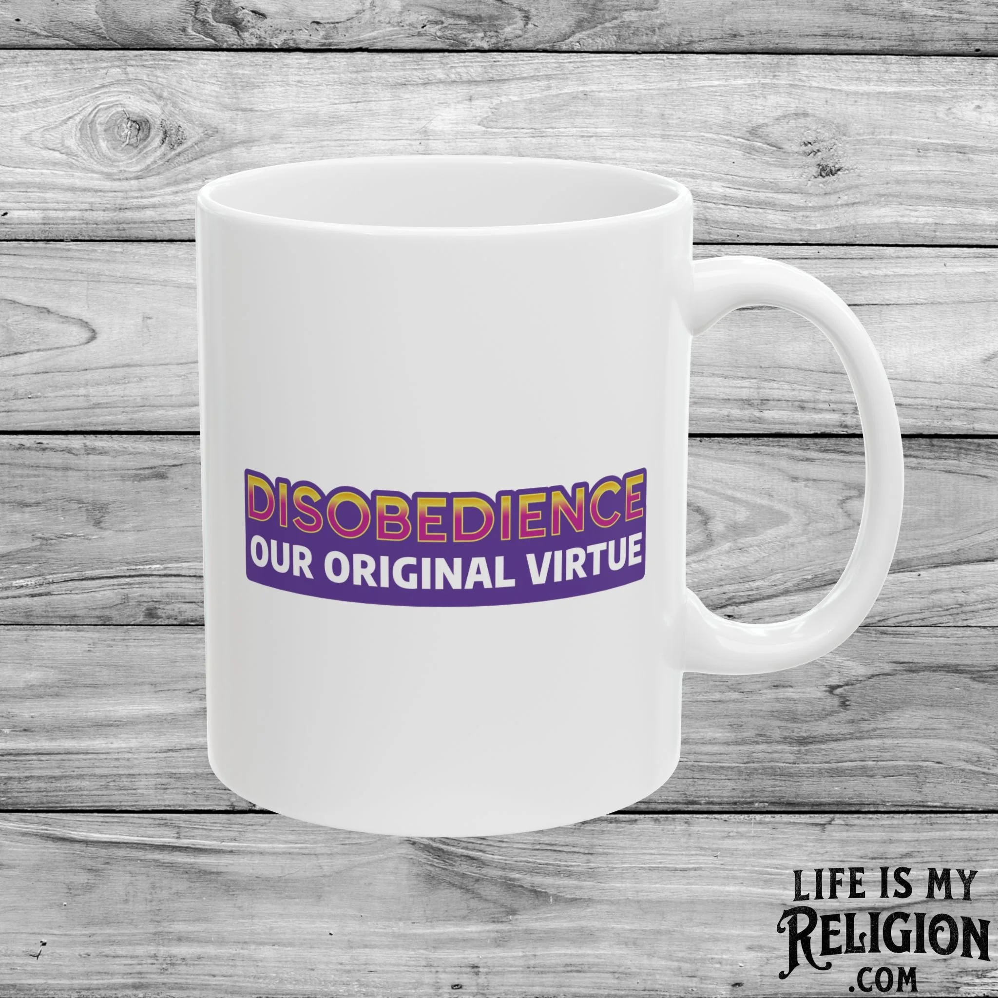 Image 1 of 3 Image 2 of 3 Image 3 of 3 Disobedience Our Original Virtue - 11oz Mug $14.99 A Jen-Ex Collection Exclusive. Perfect for enjoying your favorite hot beverage.Comfortable C-handleGlossy ceramic finish.Microwave-safe for convenient heating of beverages.Dishwasher-safe for easy cleaning. Add To Cart Added! A Jen-Ex Collection Exclusive. Perfect for enjoying your favorite hot beverage.Comfortable C-handleGlossy ceramic finish.Microwave-safe for convenient heating of beverages.Dishwasher-safe for easy cleaning.