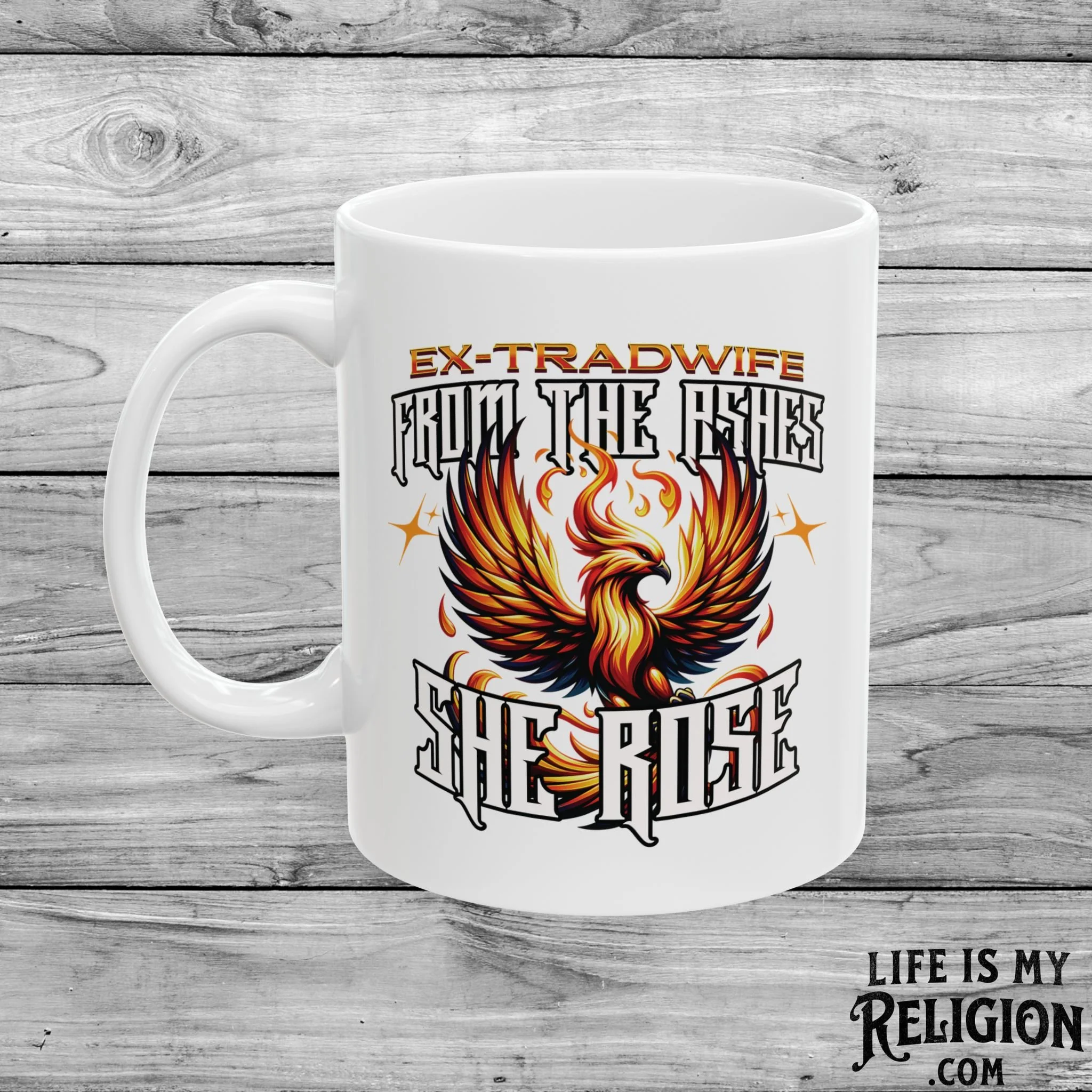 Image 1 of 3 Image 2 of 3 Image 3 of 3 Ex-Tradwife: From the Ashes She Rose - 11oz Mug $14.99 A Jen-Ex Collection exclusive. Perfect for enjoying your favorite hot beverage.Comfortable C-handleGlossy ceramic finish.Microwave-safe for convenient heating of beverages.Dishwasher-safe for easy cleaning. Quantity: Add To Cart Added! A Jen-Ex Collection exclusive. Perfect for enjoying your favorite hot beverage.Comfortable C-handleGlossy ceramic finish.Microwave-safe for convenient heating of beverages.Dishwasher-safe for easy cleaning.