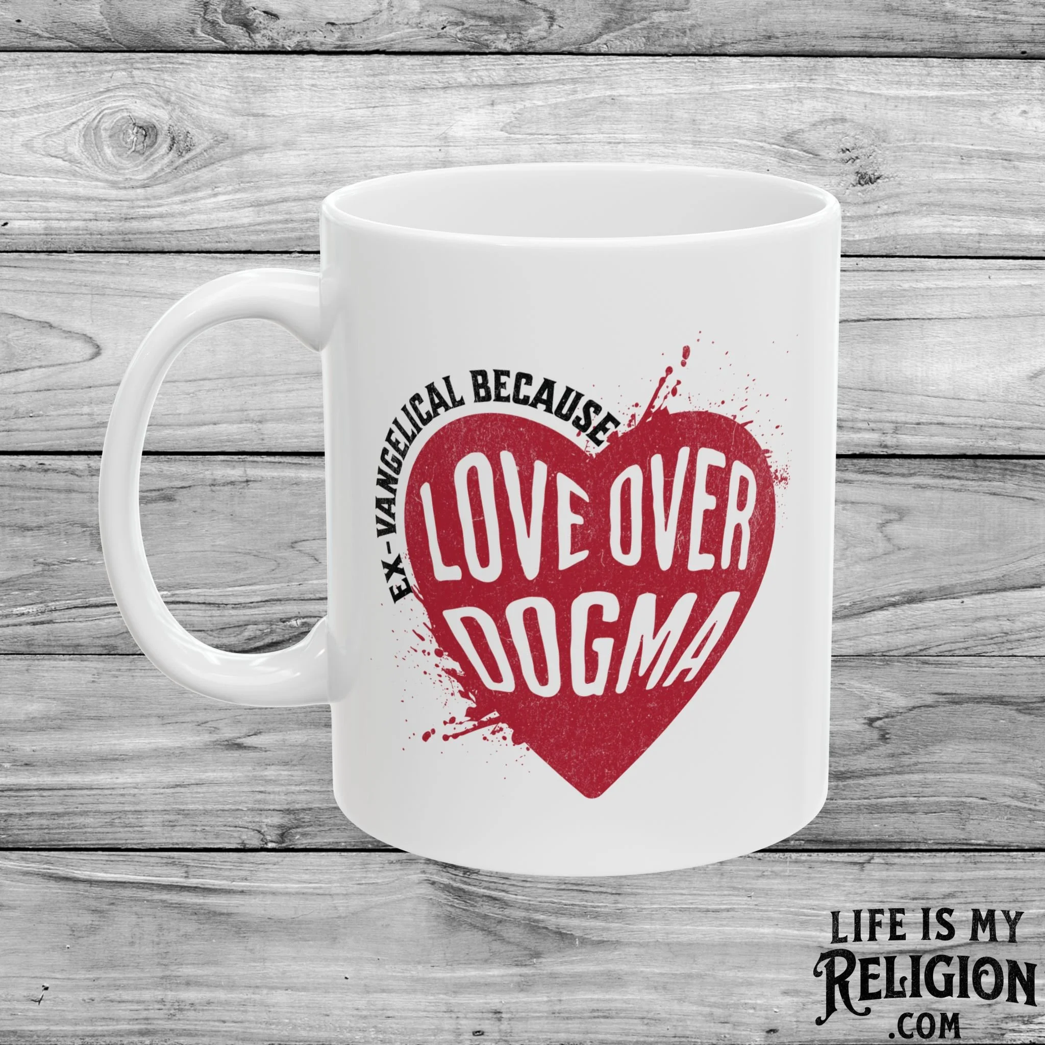Image 1 of 3 Image 2 of 3 Image 3 of 3 Ex-Vangelical Because Love Over Dogma - 11oz Mug $14.99 Perfect for enjoying your favorite hot beverage.Comfortable C-handleGlossy ceramic finish.Microwave-safe for convenient heating of beverages.Dishwasher-safe for easy cleaning. Add To Cart Added! Perfect for enjoying your favorite hot beverage.Comfortable C-handleGlossy ceramic finish.Microwave-safe for convenient heating of beverages.Dishwasher-safe for easy cleaning.