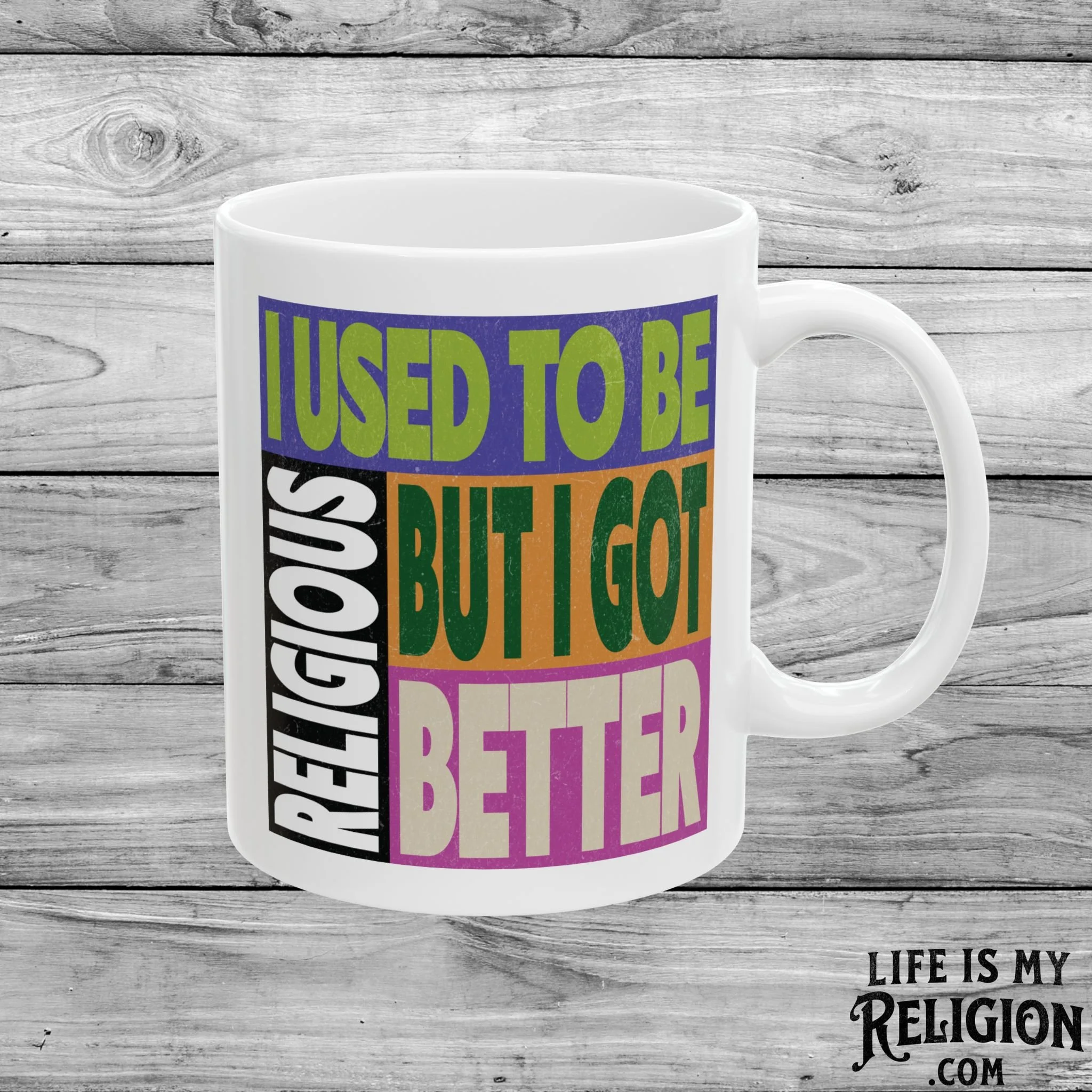 Image 1 of 3 Image 2 of 3 Image 3 of 3 I Used to Be Religious, But I Got Better - 11oz Mug $14.99 Perfect for enjoying your favorite hot beverage.Comfortable C-handleGlossy ceramic finish.Microwave-safe for convenient heating of beverages.Dishwasher-safe for easy cleaning. Add To Cart Added! Perfect for enjoying your favorite hot beverage.Comfortable C-handleGlossy ceramic finish.Microwave-safe for convenient heating of beverages.Dishwasher-safe for easy cleaning.