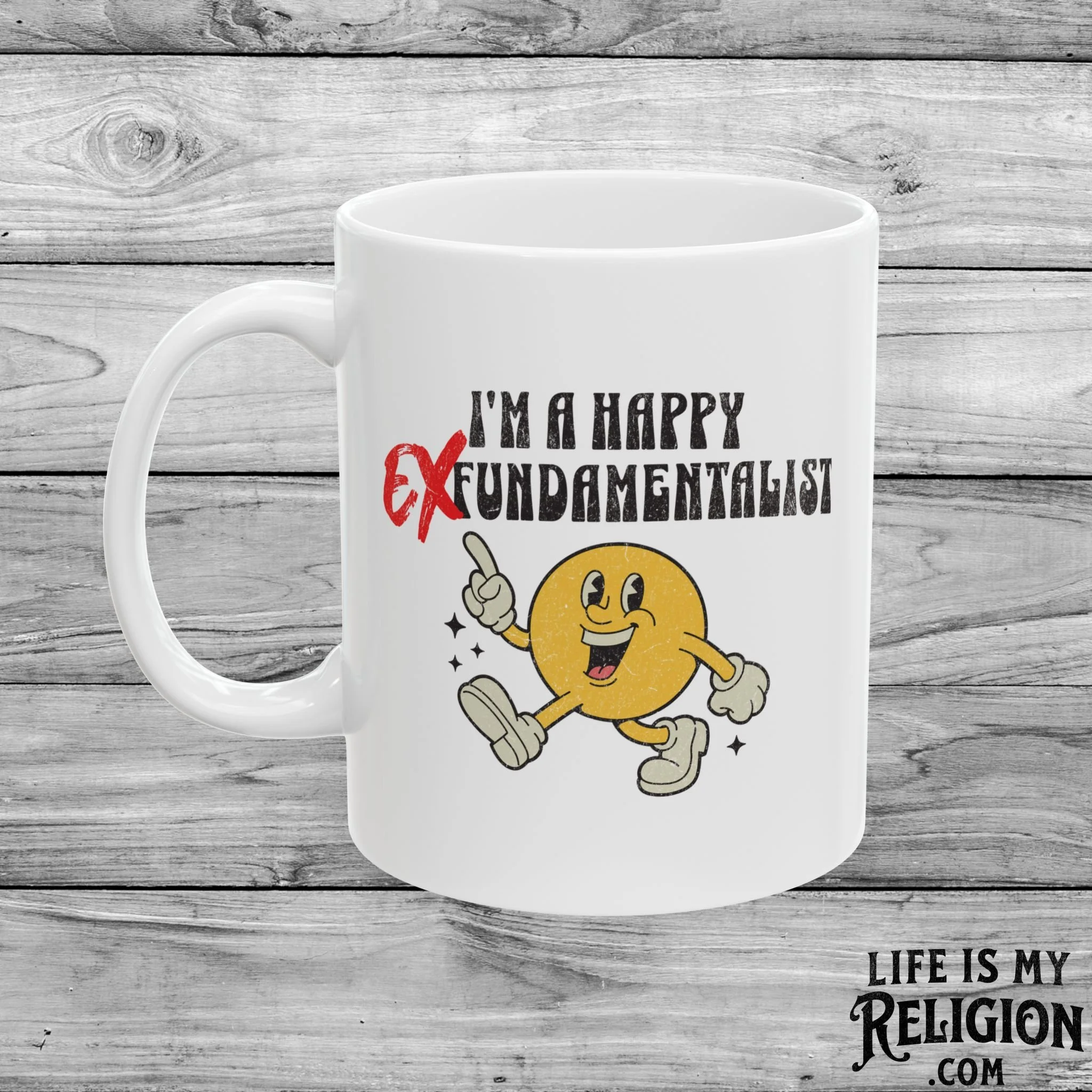 Image 1 of 3 Image 2 of 3 Image 3 of 3 I’m a Happy EX-Fundamentalist - 11oz Mug $14.95 Perfect for enjoying your favorite hot beverage.Comfortable C-handleGlossy ceramic finish.Microwave-safe for convenient heating of beverages.Dishwasher-safe for easy cleaning. Quantity: Add To Cart Added! Perfect for enjoying your favorite hot beverage.Comfortable C-handleGlossy ceramic finish.Microwave-safe for convenient heating of beverages.Dishwasher-safe for easy cleaning.