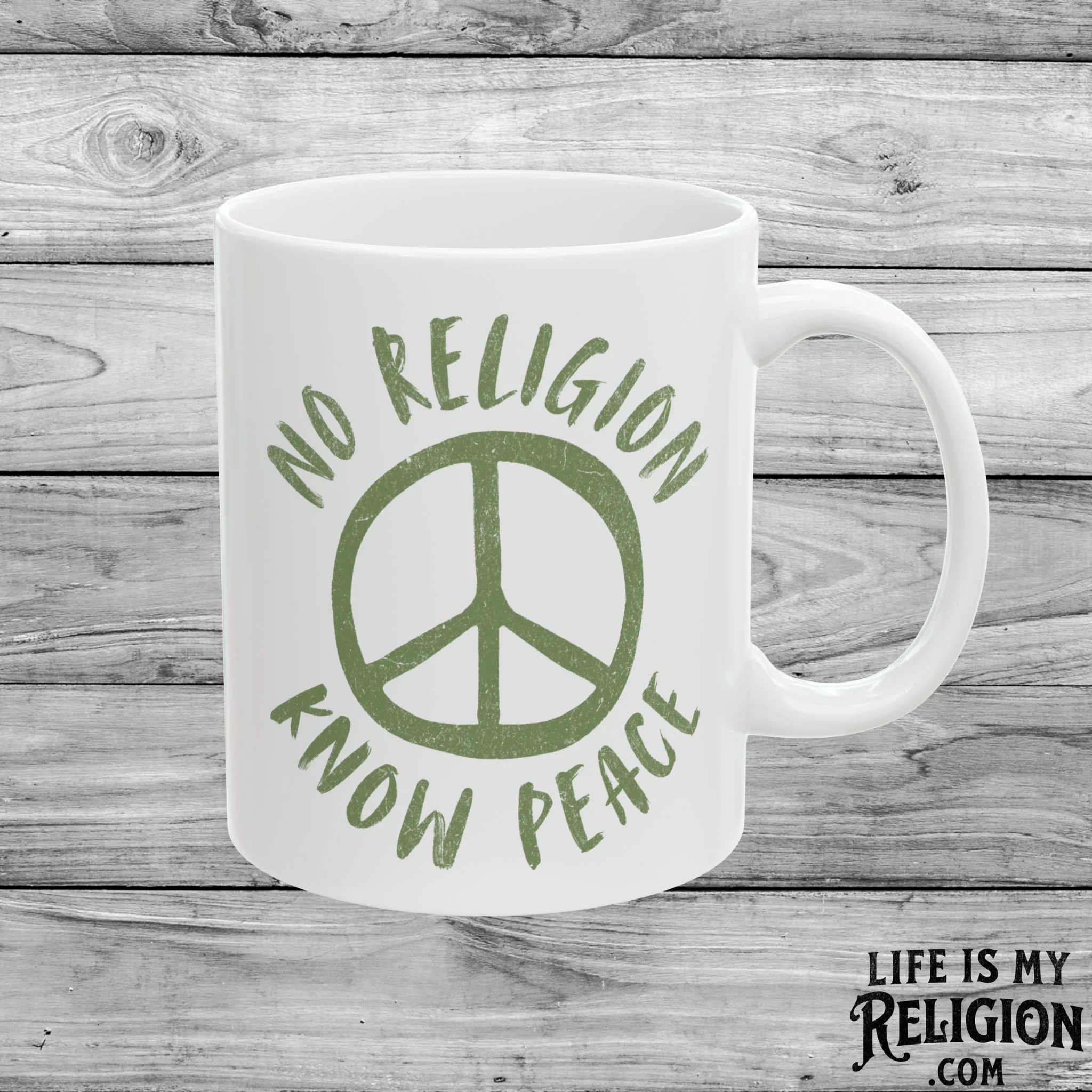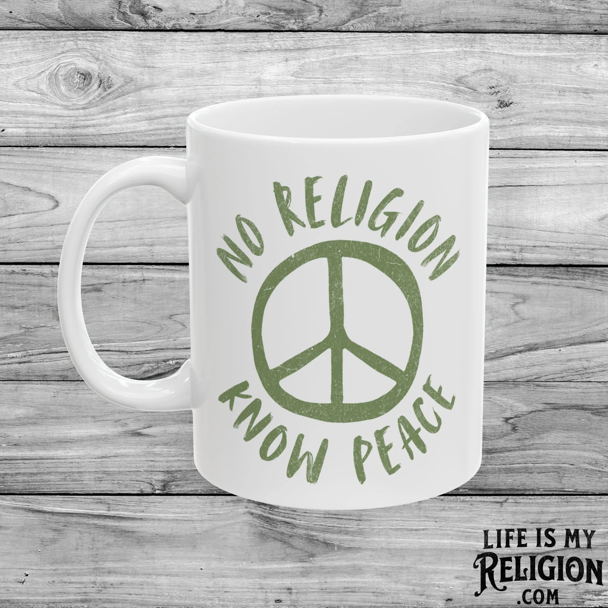 Image 1 of 3 Image 2 of 3 Image 3 of 3 No Religion Know Peace - 11oz Coffee Mug $14.99 Perfect for enjoying your favorite hot beverage.Comfortable C-handleGlossy ceramic finish.Microwave-safe for convenient heating of beverages.Dishwasher-safe for easy cleaning. Add To Cart Added! Perfect for enjoying your favorite hot beverage.Comfortable C-handleGlossy ceramic finish.Microwave-safe for convenient heating of beverages.Dishwasher-safe for easy cleaning.